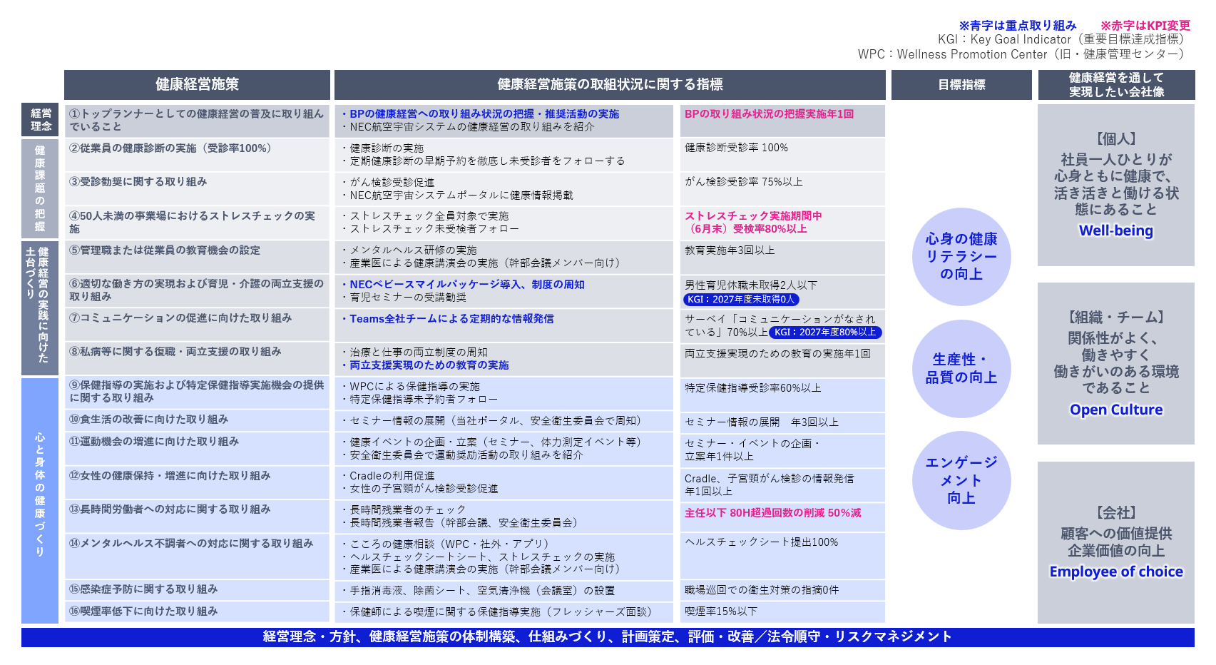 NEC航空宇宙システムは、健康経営を通じて社会価値を創造します。